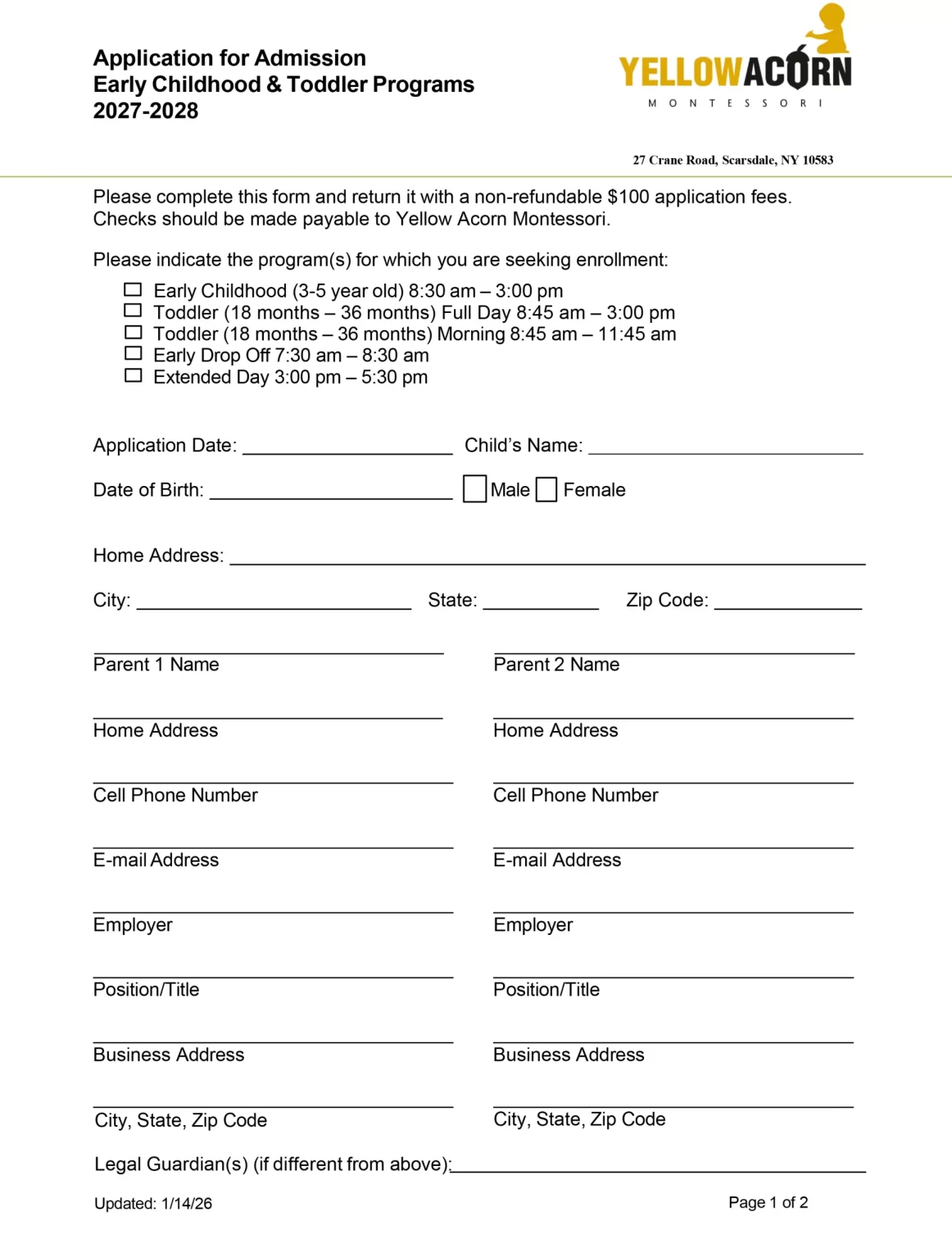 Please download the enrollment application, fill and return it, along with a $100 non-refundable application fee